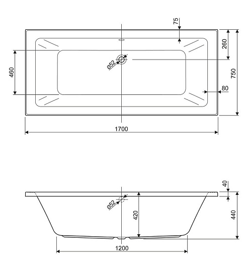 Cezares Акриловая ванна PLANE MINI-170-75-42