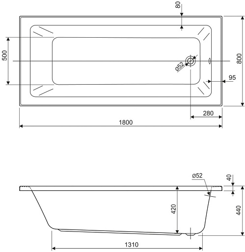 Комплектация: ванна.