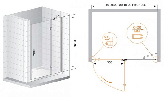 Cezares Душевая дверь в нишу BERGAMO-W-B-12-100-C-Cr-R