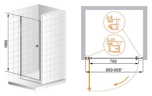 Cezares Душевая дверь в нишу ELENA-W-B-1-90-C-Cr