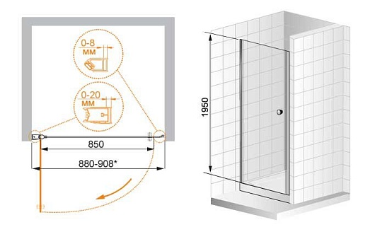 Cezares Душевая дверь в нишу ELENA-W-B-11-30+60-P-Cr-L