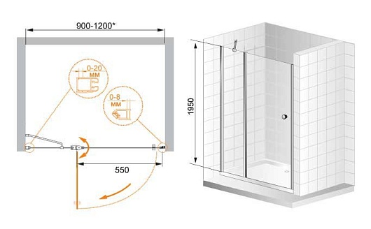 Cezares Душевая дверь в нишу ELENA-W-B-12-100-P-Cr-R