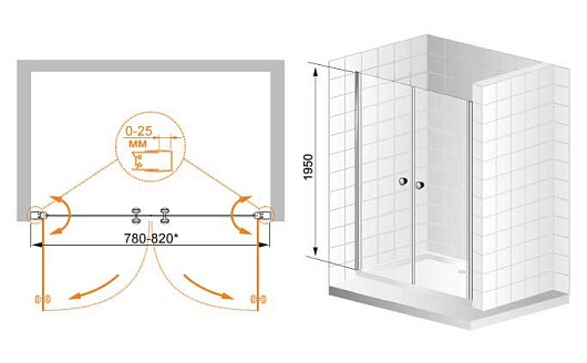 Cezares Душевая дверь в нишу ELENA-W-B-2-80-P-Cr