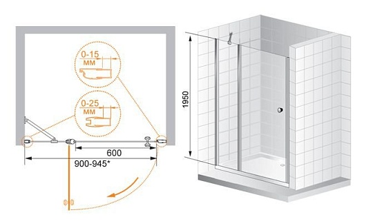 - одна распашная дверь с одним неподвижным стеклом