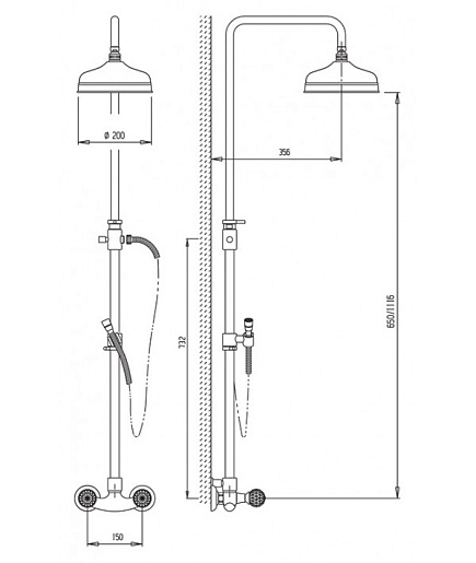 Душевая колонна со смесителем для верхнего и ручного душа: