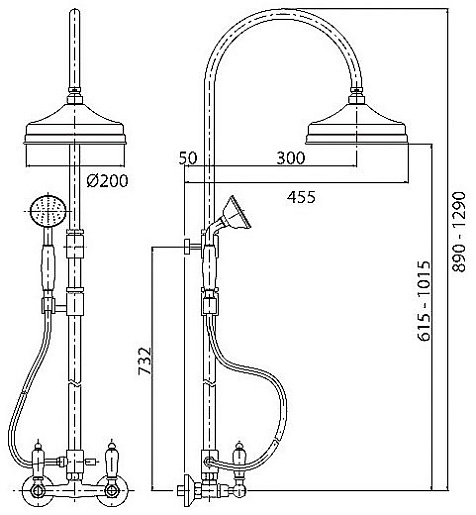 Душевая колонна со смесителем для верхнего и ручного душа: