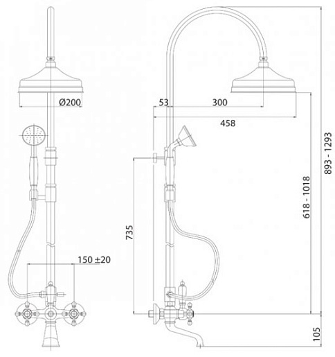 Душевая колонна со смесителем для верхнего и ручного душа: