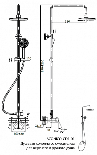 Душевая колонна со смесителем для верхнего и ручного душа: