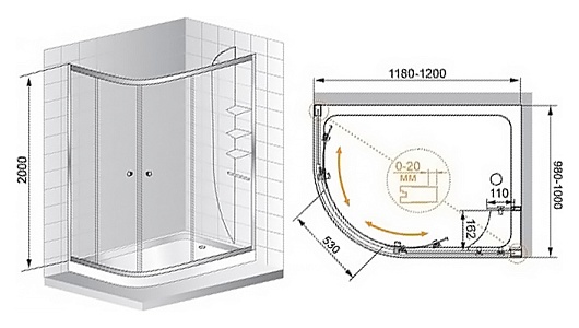 Cezares Душевой уголок ANIMA-W-RH-2-120/100-C-Cr-R
