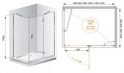 - Регулируемые габариты: (980-1000)x(780-800)x1950 мм.