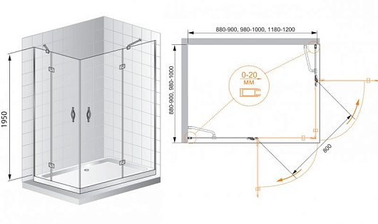 Cezares Душевой уголок BERGAMO-W-AH-2-120/100-P-Cr-R