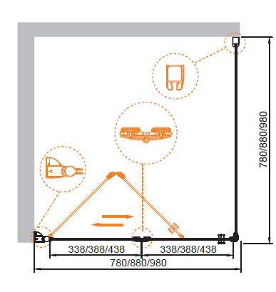 Cezares Душевой уголок ELENA-W-ASH-1-80/90-P-Cr-R