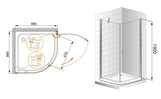 Cezares Душевой уголок ELENA-W-R-1-90-C-Cr-L