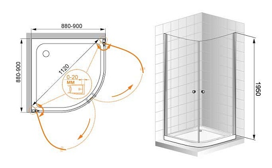 Cezares Душевой уголок ELENA-W-R-21-90-C-Cr