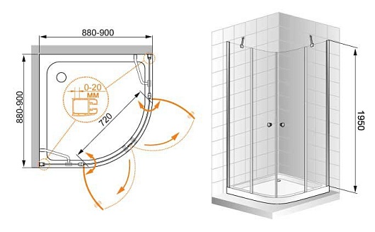 Cezares Душевой уголок ELENA-W-R-22-90-C-Cr