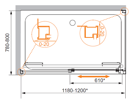 - Регулируемые габариты: (1180-1220)x(780-800)x2000 мм.