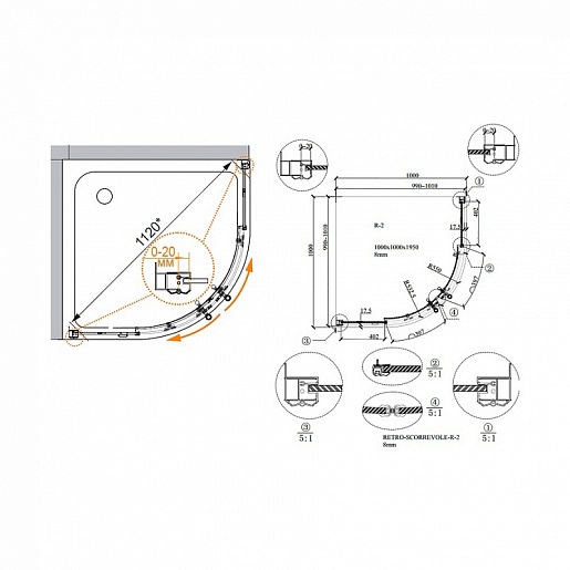 Cezares Душевой уголок RETRO-A-R-2-100-SCORREVOLE-CP-Cr