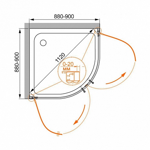 - Габариты с регулировкой: (890-910)x(890-910)x2020 мм.