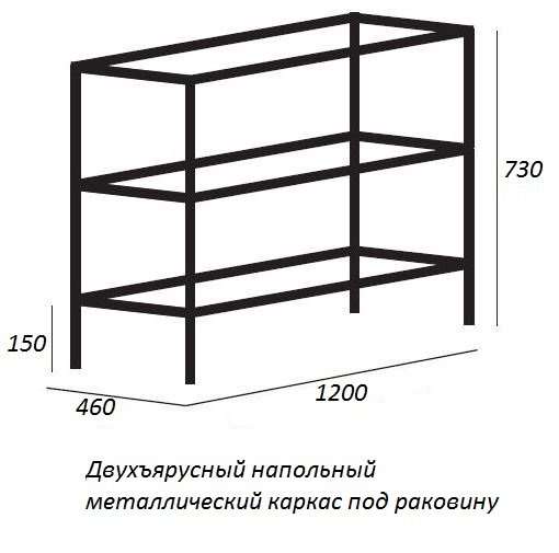 Двухъярусный напольный стальной каркас под раковину (сварной) арт. CADRO-120/46/73-2C-PIA-MET-ST. Характеристики