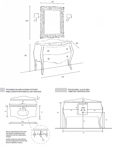 - База под раковину с двумя выдвижными ящиками, 131x60x85 см, CARL02.06