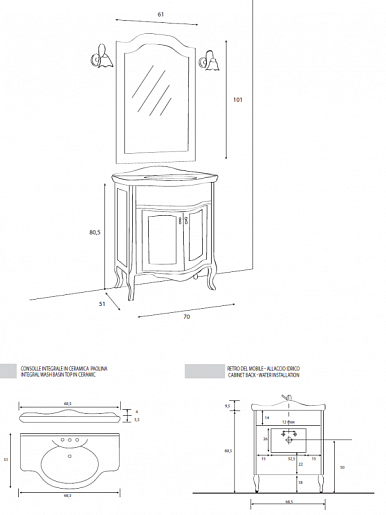 - LA70.01A База под раковину с двумя распашными дверцами, 63X49X80,5 см