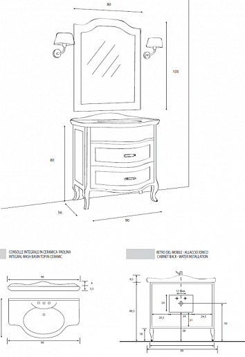 - PA90 Керамическая раковина Paolina, 90X50 см Bianco