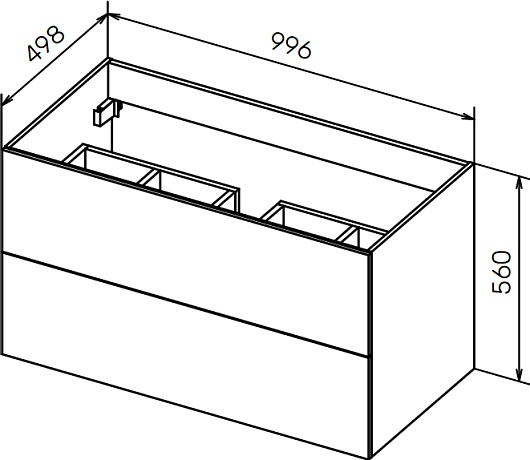 - База под раковину подвесная с двумя выкатными ящиками, база оснащена механизмами PUSH (BLUM) и функцией плавного закрывания, с фасадами, закрывающими боковины, размер: 1000x500x560 мм., PREMIER-HPL-100-2C-SO-CALD-BLUM-EST.