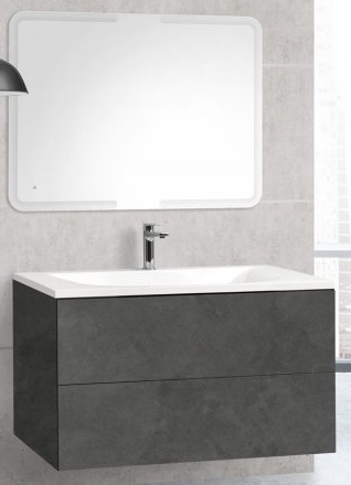 - База под раковину подвесная с двумя выкатными ящиками, база оснащена механизмами PUSH (BLUM) и функцией плавного закрывания, с фасадами, закрывающими боковины, размер: 1000x500x560 мм., PREMIER-HPL-100-2C-SO-LAVA-BLUM-EST.