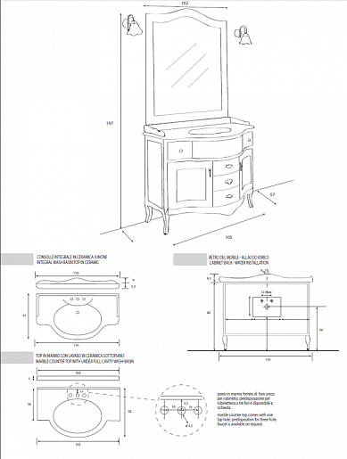 - RU02/C.01 База под раковину с пятью выдвижными ящиками и двумя распашными дверцами, 103x57x80 см