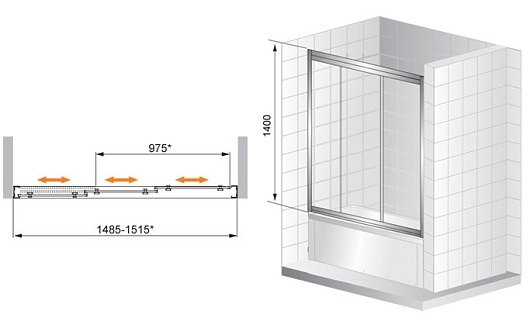 Cezares Шторка на ванну FAMILY-B-V-3-150/140-P-Cr