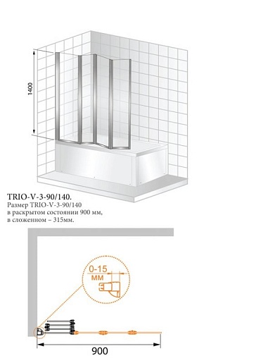 Cezares Шторка на ванну TRIO-W-V-3-90/140-C-Cr-R