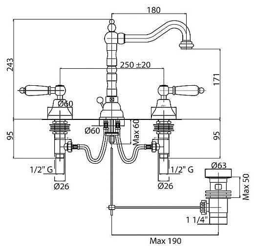 Cezares Смеситель DIAMOND-BLS2-02-Sw для раковины
