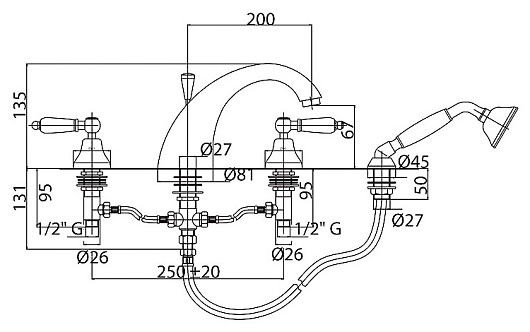 Cezares Смеситель DIAMOND-BVD-03/24-Sw на борт ванны