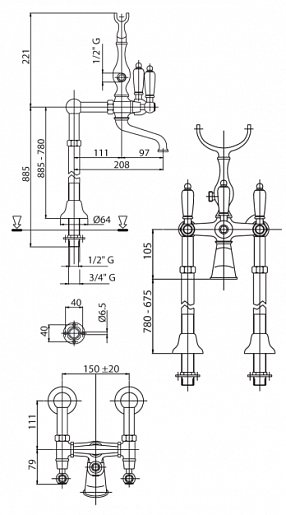 Cezares Смеситель DIAMOND-VDP-02-Sw напольный