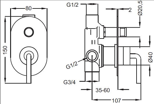 Cezares Смеситель ECO-VDIM-01-Cr для душа