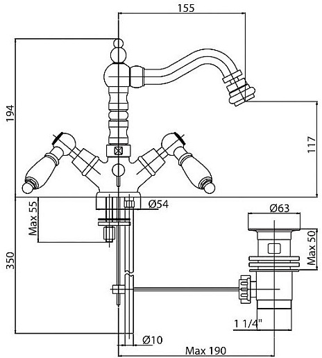 Высота излива, мм: