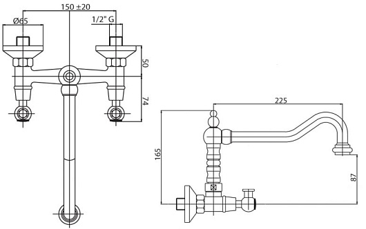 - Настенный монтаж на 2 отверстия