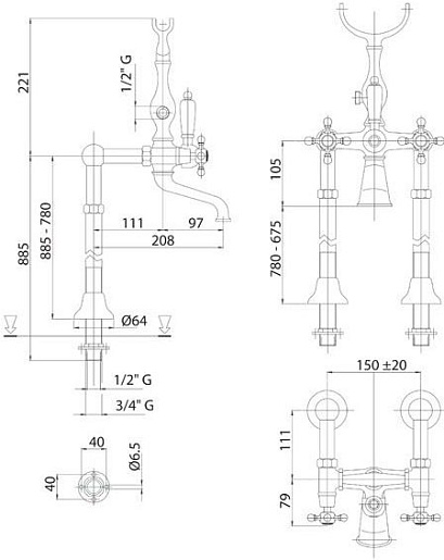 Cezares Смеситель GOLF-VDP-01 напольный для ванны