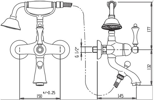 - Напольный монтаж на 2 отверстия
