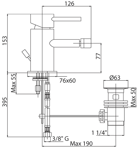 Высота излива, мм: