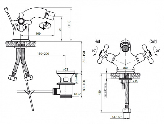 Cezares Смеситель RETRO-BS1-01 для биде