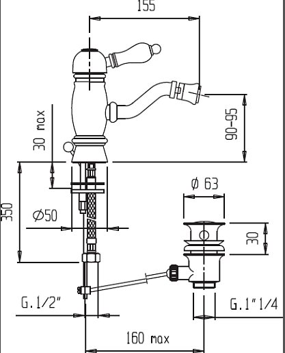 Cezares Смеситель VENEZIA-BSM1-01-Bi для биде