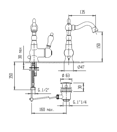 Cezares Смеситель VENEZIA-LSM2-03/24-Bi для раковины