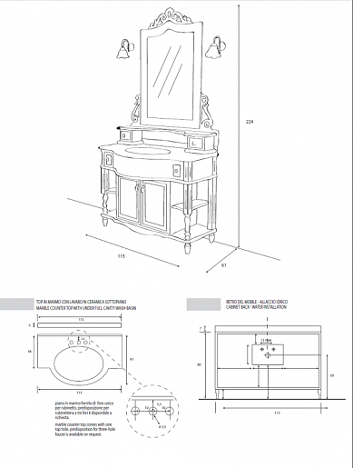 - MO02/04 База под раковину с двумя выдвижными ящиками и двумя распашными дверцами, 113х60х80 см