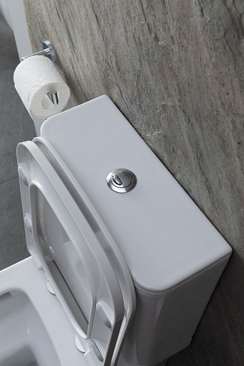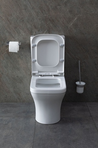 - Унитаз уже укомплектован крышкой-сиденьем с функцией плавного закрывания (микролифт, Soft Close), которая произведена из прочного дюропласта.