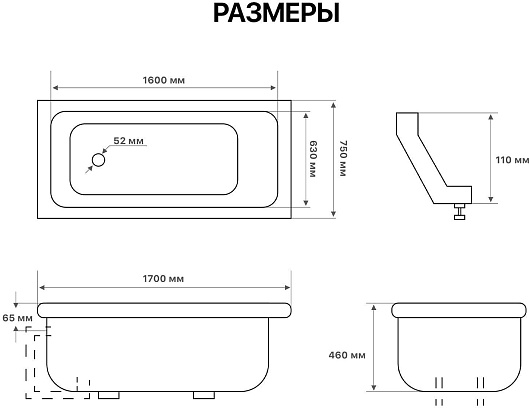 Комплектация: ванна, ножки.