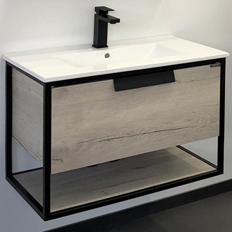 Тумба с раковиной Бонн 75 подвесная дуб дымчатый