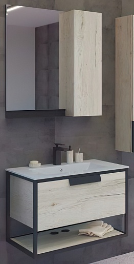 В комплекте: тумба, раковина, зеркальный шкаф, комплект креплений.