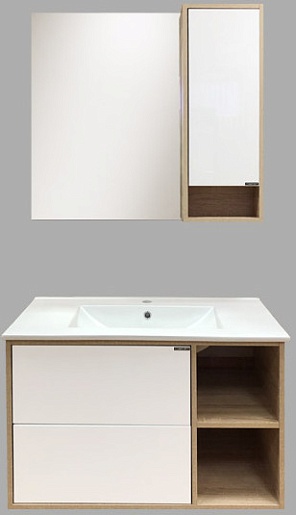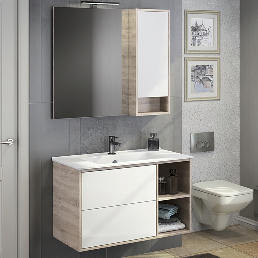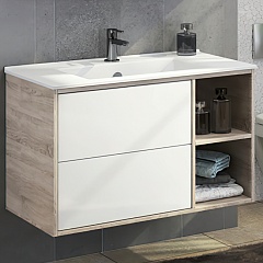 Тумба с раковиной Гамбург 90 подвесная белая/дуб сонома