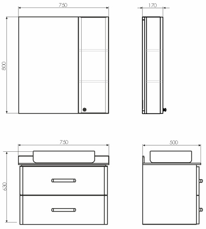В комплекте: тумба, раковина, столешница, комплект креплений.